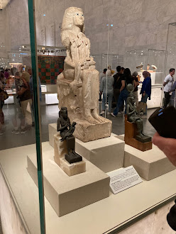 Here is a long shot of the hall. It was roomy (and felt quite different from the spatially crammed Egyptian Museum. It is easier to look at the artifacts in this space, but there is something about the stuffed, antiquarian quality of the Egyptian Museum that is very comforting and it makes the pieces seem older and more valuable - like you might find a special treasure as you shuffle through the rows of stuff. Aladdin's lamp could be just around the corner!)